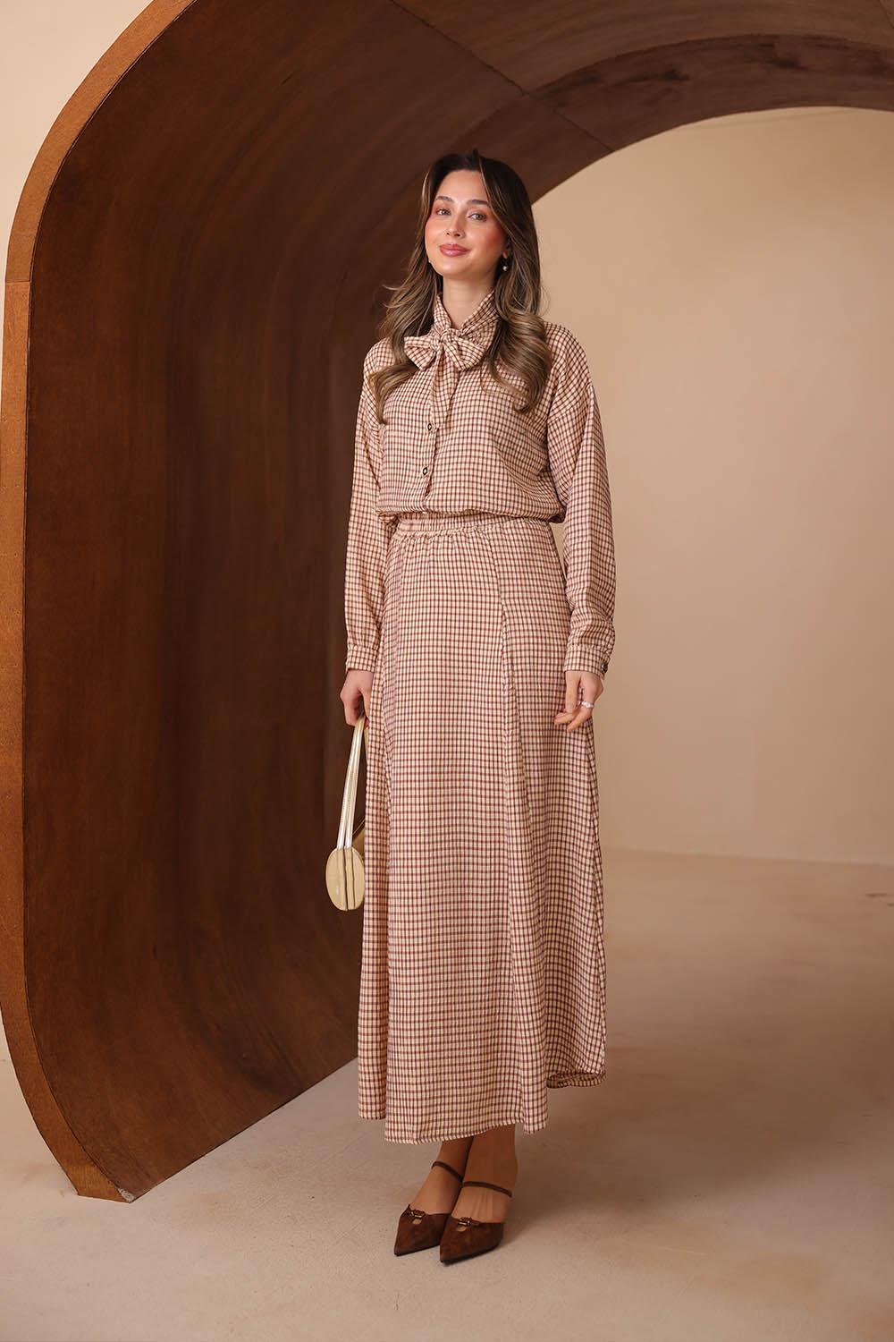 VAYNÈS Milano’nun geleneksel desenleri modern formlarla buluşturduğu Aria Ekose Takım, zamansız bir şıklığın kapılarını aralıyor. Pamuklu poplin kumaşın nefes alan yapısı ve dökümlü etek kesimi, hem günlük hayatta hem de şık davetlerde zahmetsiz bir zarafet sunuyor.