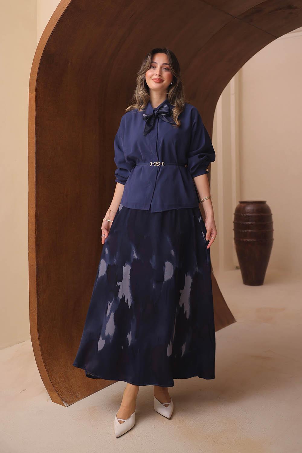 <p>Lacivert modal kumaş etekli takımımız, hem günlük hayatta hem de özel davetlerde şıklığınızı tamamlamak için tasarlandı. Yumuşacık modal kumaşıyla gün boyu rahatlık sunarken, akışkan drape’si ile her hareketinizde zarafet katıyor.</p>