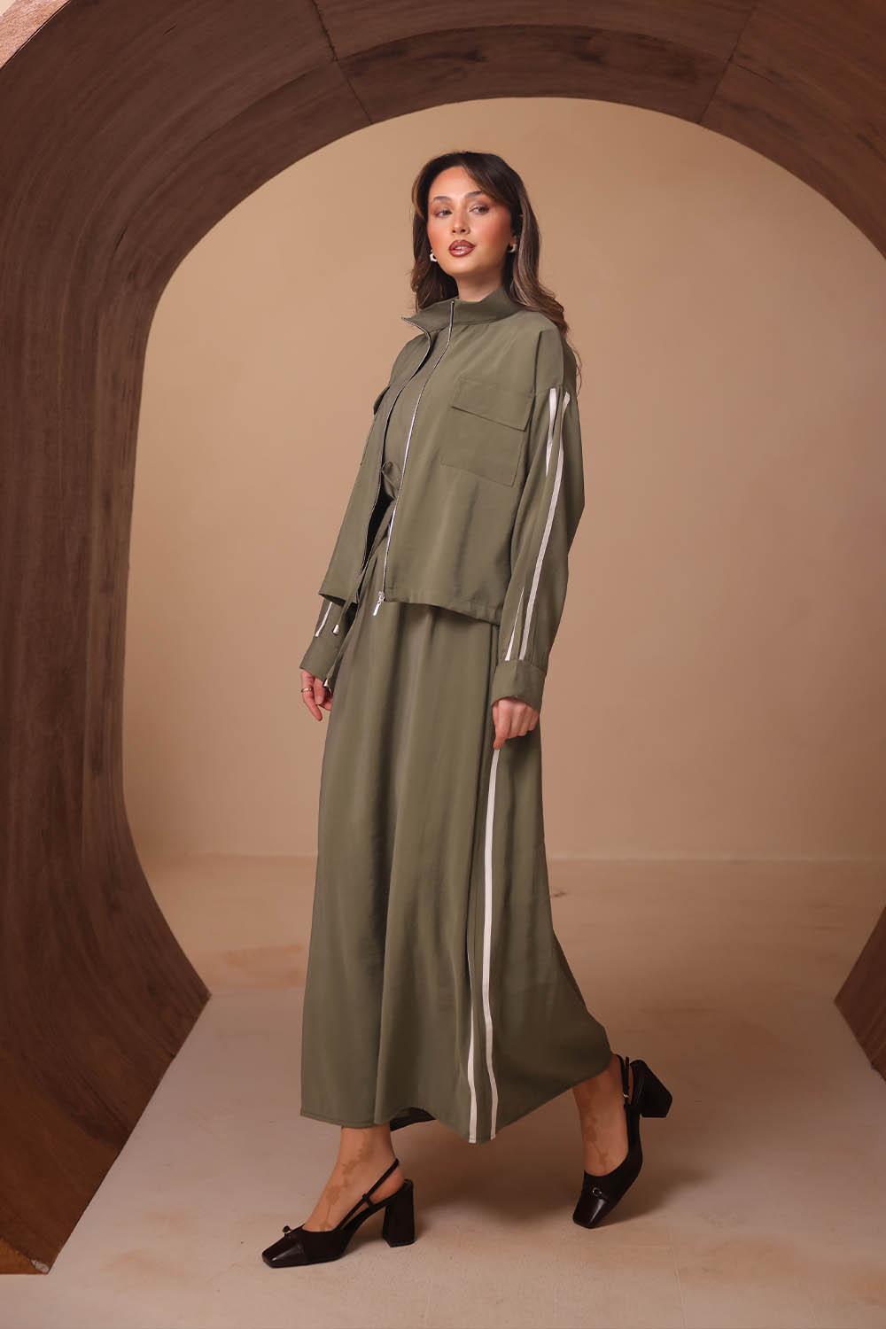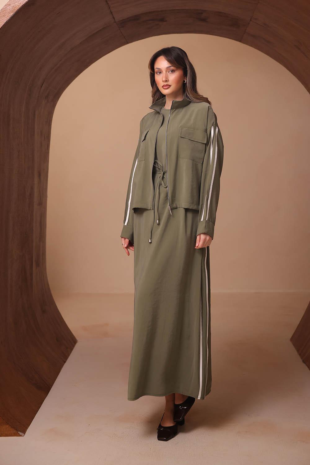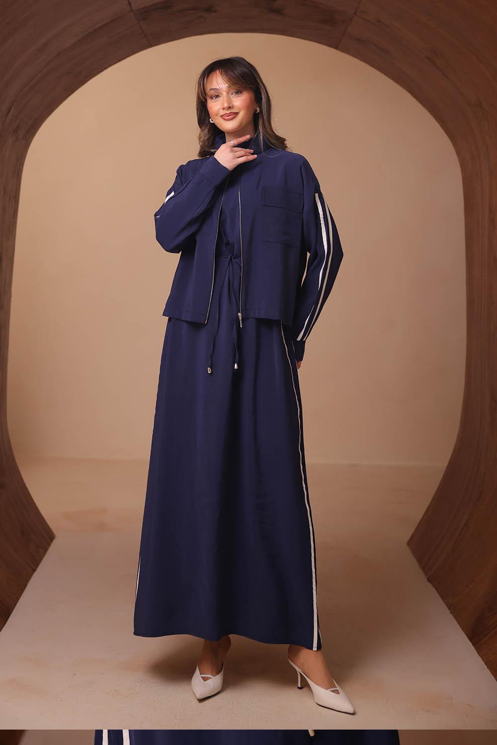 VAYNÈS Milano’nun çabasız şıklık anlayışını yansıtan Aria Şeritli Elbise, modal liflerinin ipeksi dokusunu modern bir silüetle sunuyor. Tasarıma hareket katan kontrast şerit detayları, elbiseye iki parçalı bir takım görünümü kazandırırken, boydan boya uzanan formuyla kullanım kolaylığı sağlıyor.