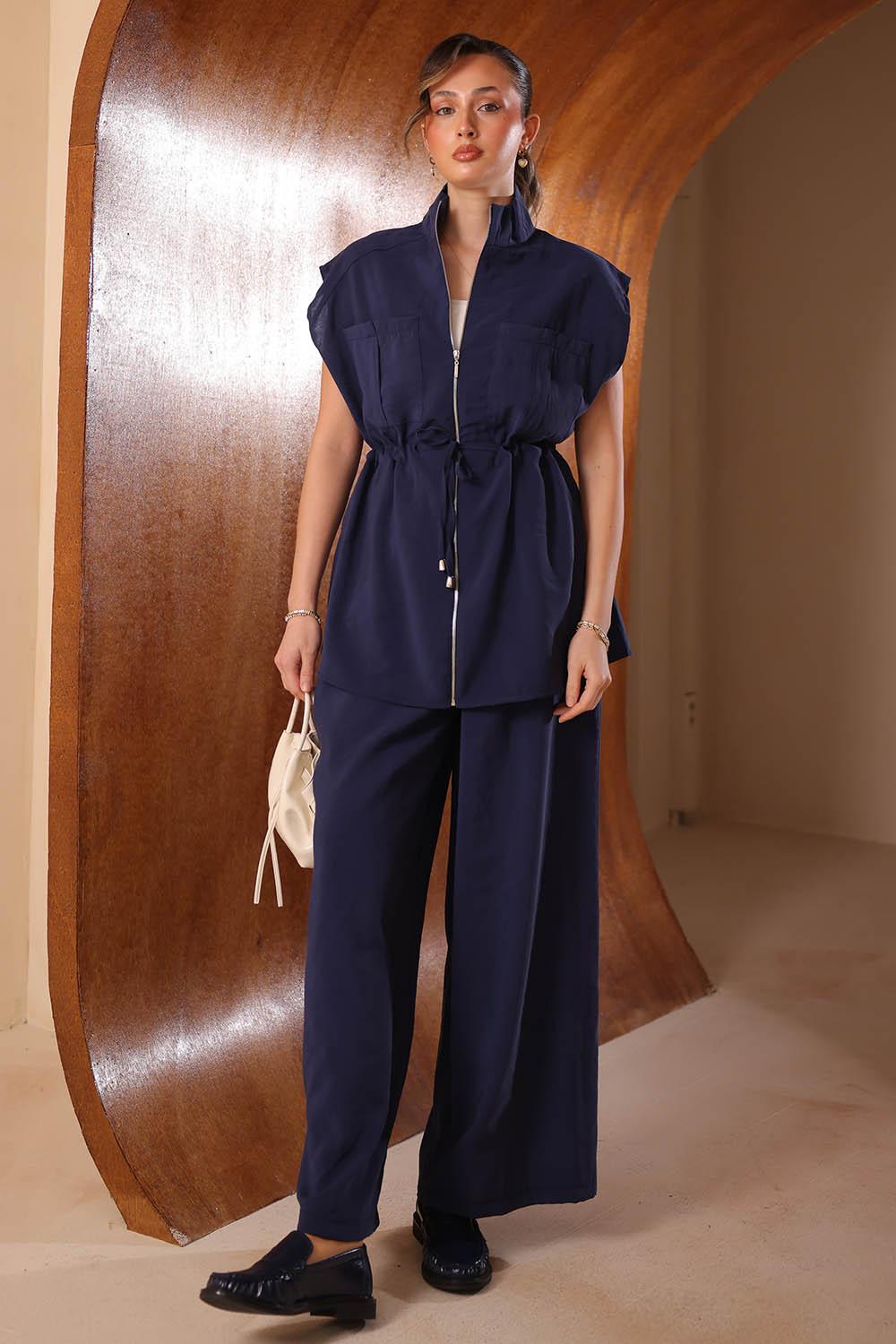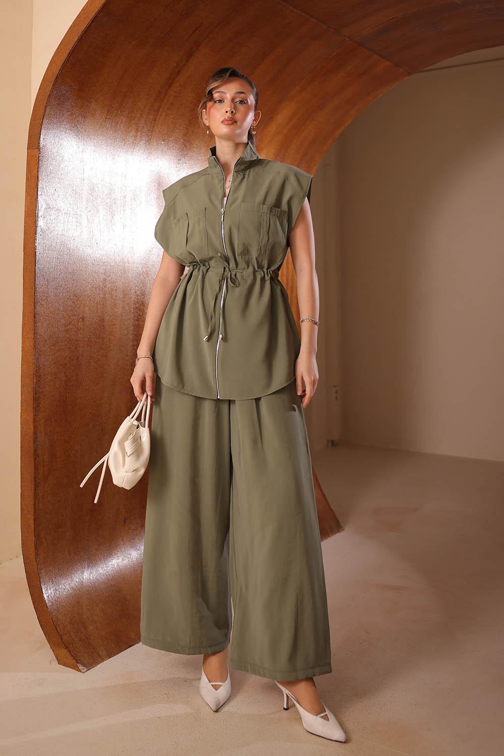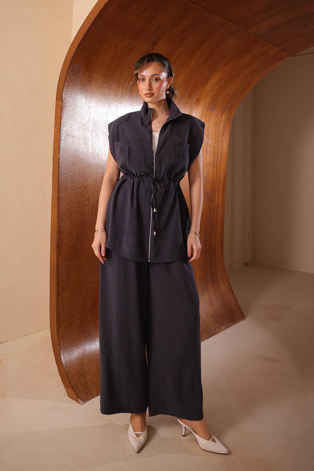 VAYNÈS Milano'nun modern minimalizm anlayışını yansıtan bu yelekli modal takım, klasik ikili setlerin ötesine geçerek gardıroba katmanlı bir şıklık katıyor. Yelek detayı, kombinin önüne geçmeden silüete yapısal bir derinlik eklerken %100 modal kumaşın o tanıdık ipeksi dokusu tüm gün konfor sunuyor. Hem ofis günlerinde hem de özel buluşmalarda zahmetsizce şık görünmek isteyenler için tasarlandı. Her mevsim ve her tarzla uyum sağlayan bir gardırop yatırımı.